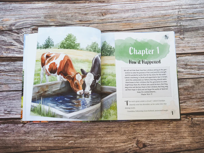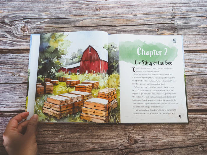 Don and Joyce are excited to spend the summer with Grandpa and Grandma on their peaceful farm in the country. Together, they enjoy the warmth of the sun and the daily chores and activities of the farm. Yet the most memorable part of their visit is the fascinating stories told by Grandmother each day. The children learn a series of timeless virtues through stories and Scripture, each tied to a “busy bee” they’re encouraged to: Bee Grateful, Bee Prayerful, Bee Obedient, Bee Kind, and others.