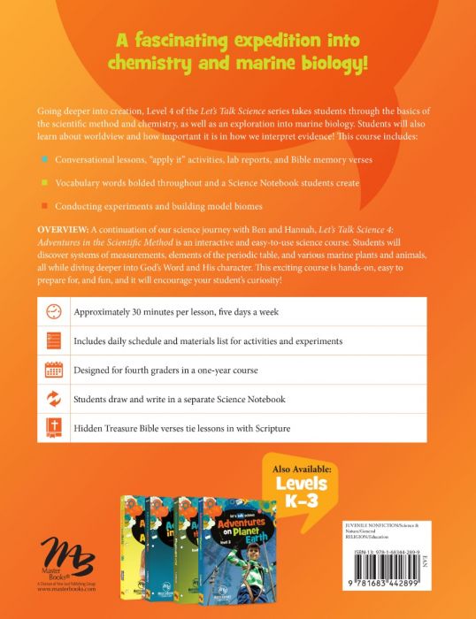 Your fourth-grade level student will love exploring marine biology, chemistry and more using Adventures in the Scientific Method, Level 4 of Master Books award-winning Let’s Talk Science homeschool series. They will also learn about worldview and how important it is in how we interpret evidence!