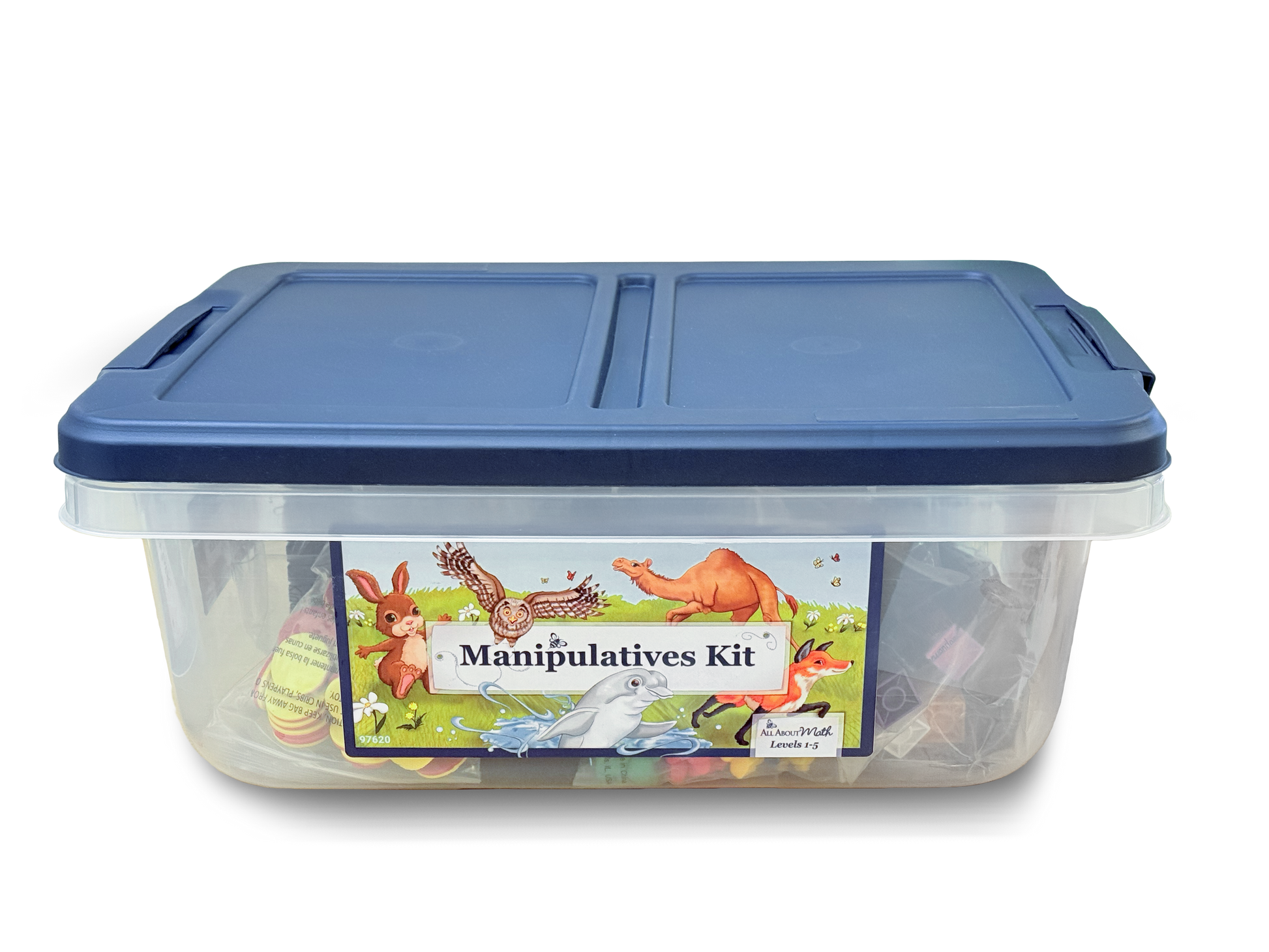 The All About Math Manipulatives Kit is a one-time purchase used for all five levels of All About Math. These carefully chosen items are designed to help you take abstract concepts and make them concrete.
