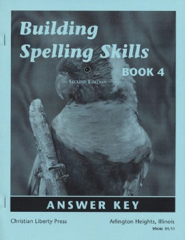 This paper-stapled answer key provides answers for the Building Spelling Skills 4 workbook.