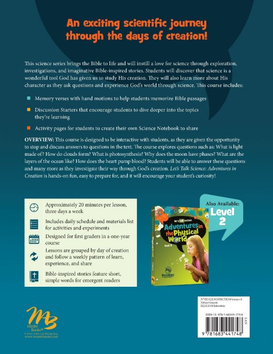 This science series, designed for students in grades K-3, will bring the Bible to life and instill a love for science through exploration, investigations, and biblically inspired stories. Students will discover that science is a wonderful tool God has given us to study His creation and learn more about His nature as they ask questions and experience God's world through science. They will also learn more about His character as they ask questions and experience God's world through science. This course includes: