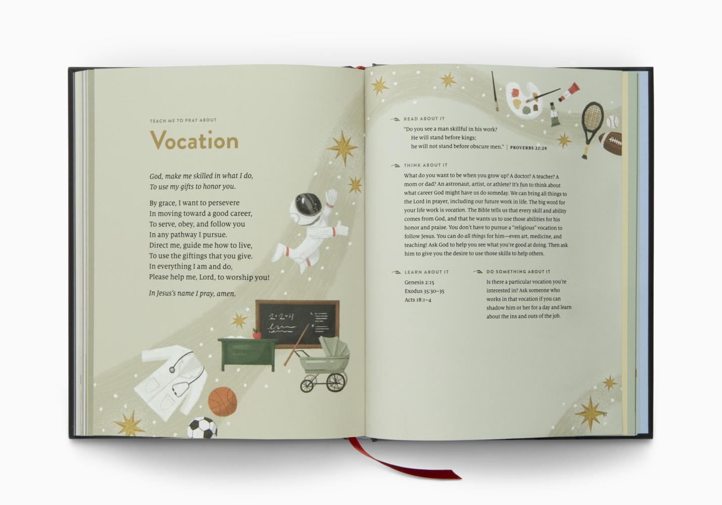 Prayer is a beautiful way to tell God about everything we're going through. But when emotions run high or life gets overwhelming, it can be tough to find the right words. Teach Me to Pray offers children a rich collection of prayers designed to help them better understand the world, express their feelings to God, and use their Bible in prayer.